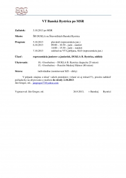 V nedeľu 6.10.2013 po M-SR mužov a žien v Banskej Bystrici sa uskutoční jednodňové sústredenie. Rozpis na sústredenie najdete tu: